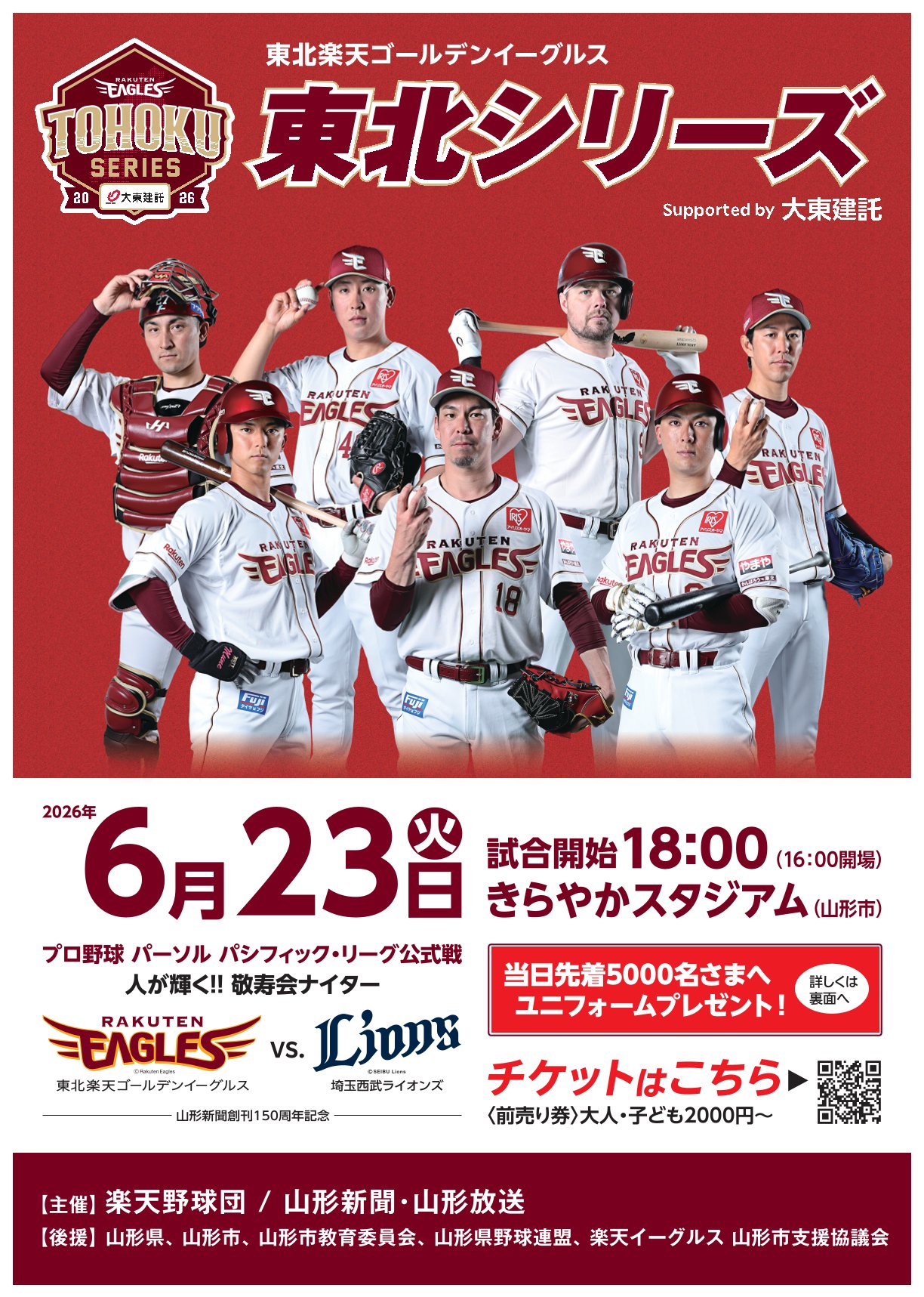 楽天イーグルスが今年も山形にやって来る! 良い席をゲットして盛り上がろう!~6月23日(火)@きらやかスタジアム(山形市)