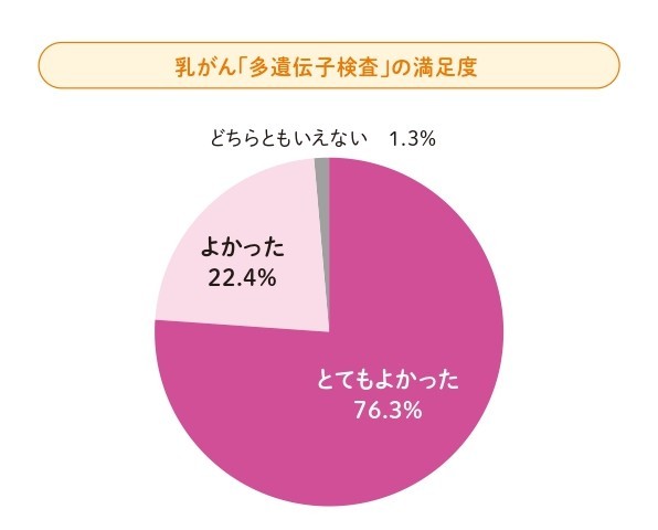 この検査を受けた乳がん患者さんのうち、受けて「とてもよかった」と答えた人は76.3%。「よかったと思わない」「全くよかったと思わない」と回答した患者さんはいませんでした。(EXACT SCIENCES調べ)