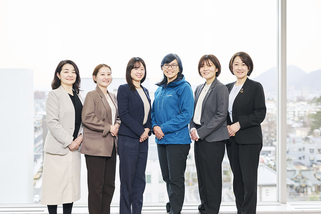 細谷さんと、損保ジャパン山形支店で防災士の資格を持つ女性職員の皆さん