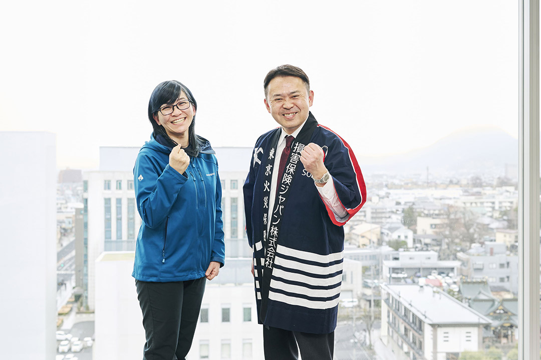 損保ジャパン山形支店の後藤圭吾支店長(左)と、山形県自主防災アドバイザーとして活躍する細谷真紀子さん(ゲンサイデイズ代表)