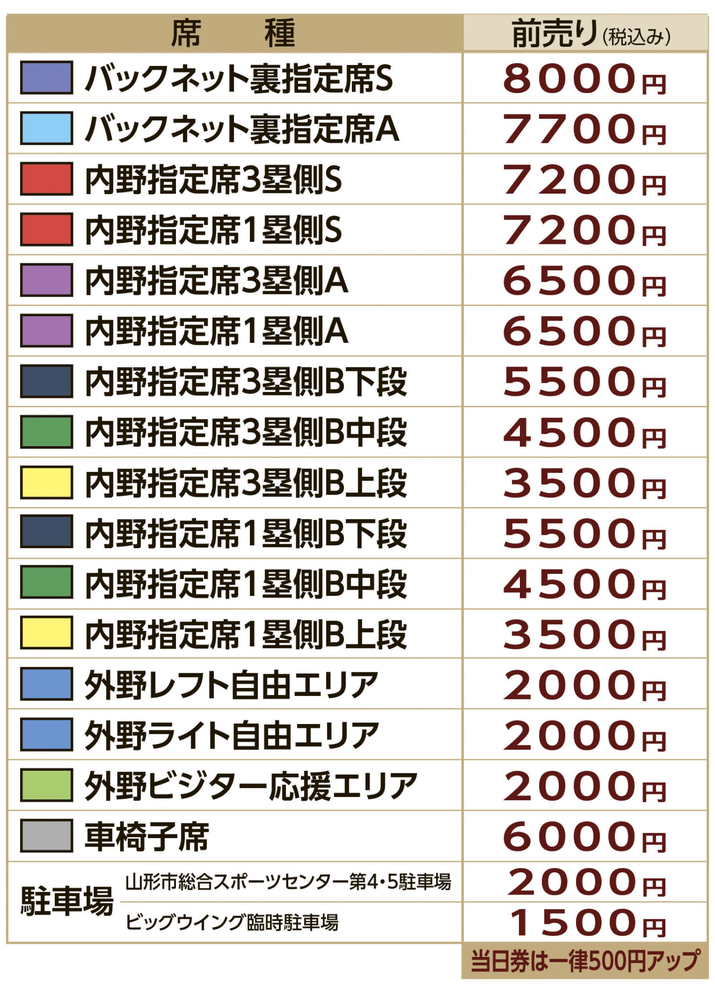 〇販売席種・価格