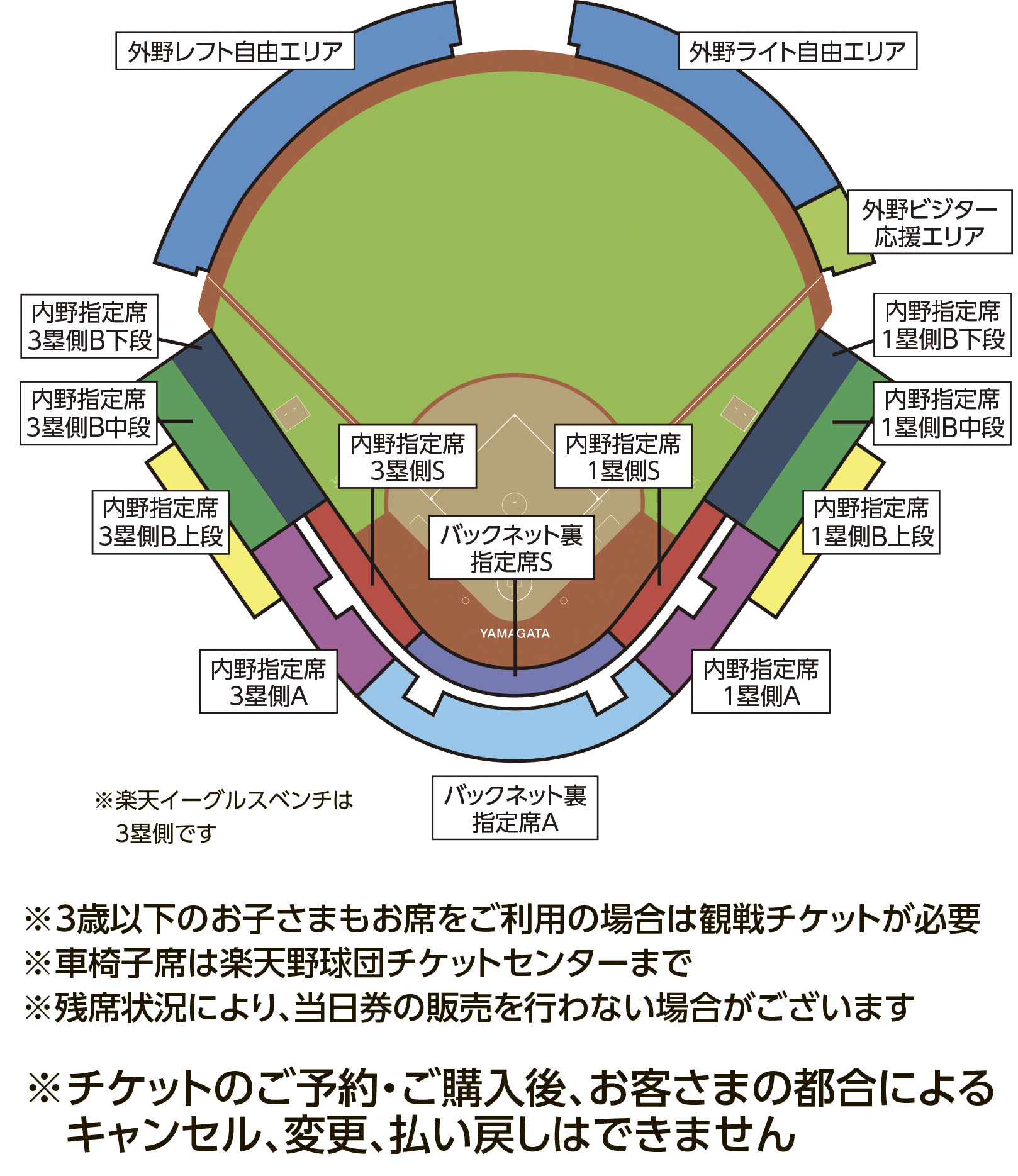 ・車椅子席は楽天野球団チケットセンターまでお申し込みください。