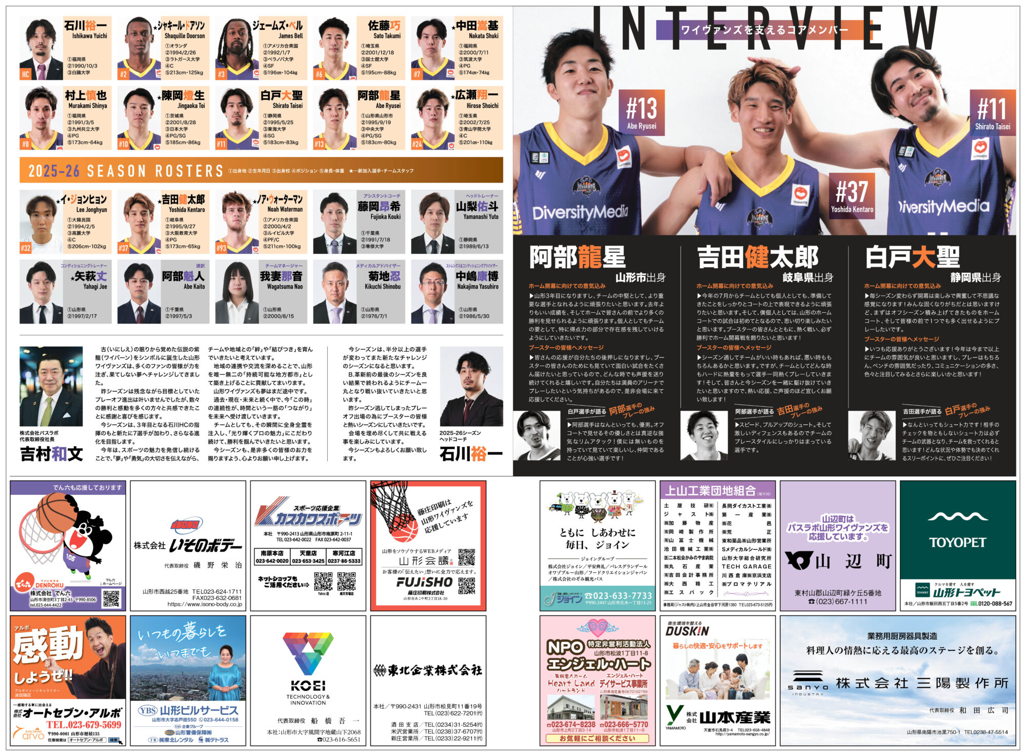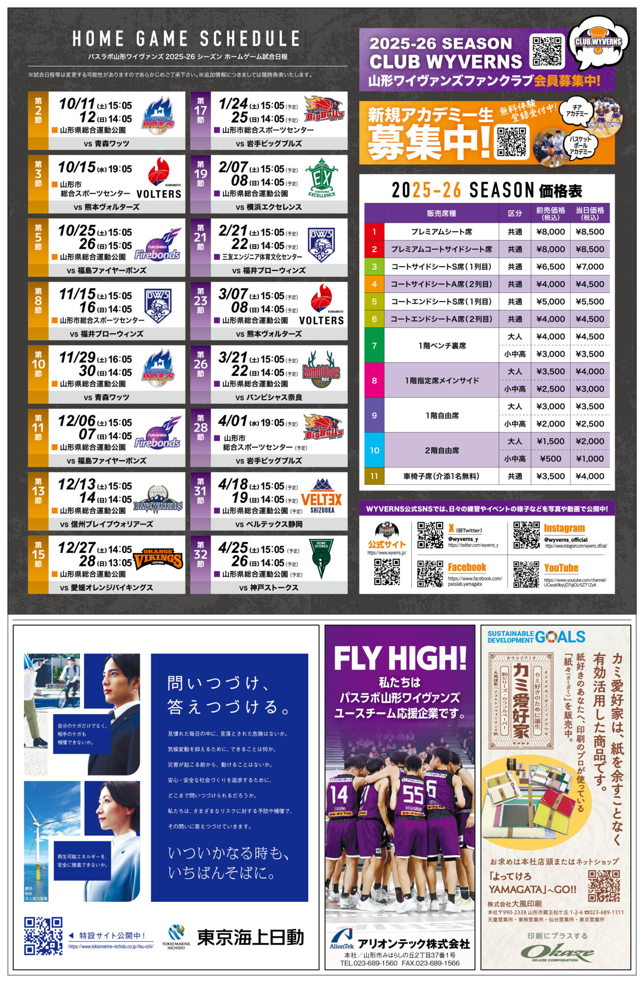 選手の情報やホームゲームスケジュールは山形新聞発行の応援特集号でチェックしてね!